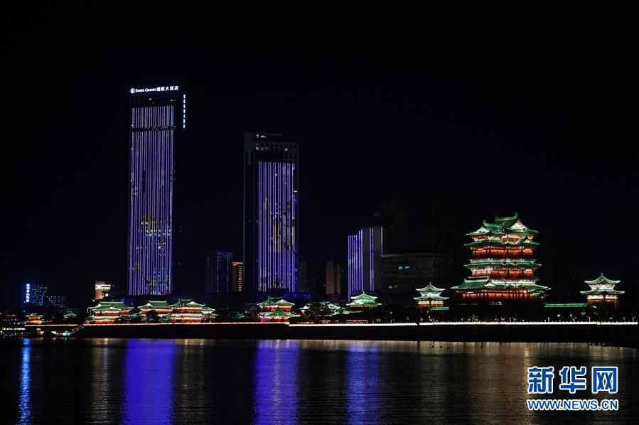 這是江西南昌贛江畔上演的燈光秀(8月6日攝)。 新華社記者周密 攝