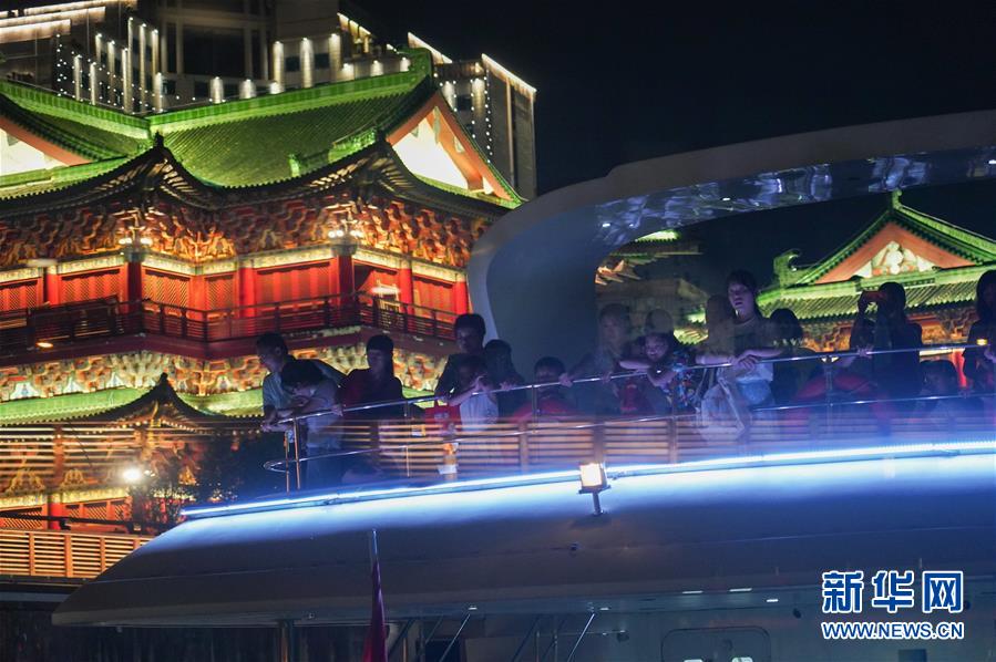 在江西南昌,游客在游輪上欣賞夜景(8月6日攝)。 新華社記者 萬(wàn)象 攝