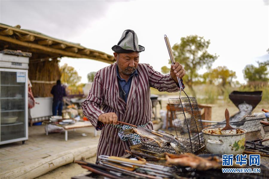 羅布人村寨位于新疆巴音郭楞蒙古自治州尉犁縣,塔里木河從這里流過,沙漠、胡楊、湖泊的奇妙組合吸引了不少游客。生活在這里的羅布人阿木東·艾不東更成為大家關(guān)注的焦點(diǎn)。 阿木東·艾不東61歲,聲音洪亮,面色紅潤(rùn),平時(shí)喜歡穿著羅布麻紡織而成的對(duì)襟長(zhǎng)袍和羊毛氈制成的船形帽子,這是羅布人的傳統(tǒng)裝扮。 如今,許多羅布人不再以打魚為生,他們有的放牧,有的種植,有的開設(shè)店鋪……像阿木東一樣在沙漠中漁獵的羅布人已經(jīng)很少了。 制作羅布人傳統(tǒng)美食——紅柳烤魚是阿木東的拿手絕活。一根紅柳,穿起一條野魚,起一堆炭火,撒少許鹽巴,就可以靜待皮焦肉嫩的紅柳烤魚了。除了傳統(tǒng)口味外,阿木東對(duì)羅布烤魚進(jìn)行了改良?!拔颐刂屏艘环N烤魚醬,里面除了辣椒、鹽巴、孜然,還有其他佐料?!碑?dāng)問起具體是哪些配方時(shí),阿木東笑著說:“還有就是塔里木河的味道!” 阿木東是一個(gè)閑不住的人。旅游旺季過后,他會(huì)制作卡盆(胡楊制作的獨(dú)木舟)模型、胡楊筆筒等,等旺季來臨再把這些小物件賣出去。 兩千年前,塔里木河與孔雀河載著天山、昆侖山的雪水,把羅布泊充盈得煙波浩渺。羅布人靠羅布泊水域和周圍的濕地及原始胡楊林繁衍生息。后來,塔里木河下游河床被風(fēng)沙淤塞,干旱斷絕了綠色。2001年,塔里木河流域近期綜合治理項(xiàng)目啟動(dòng)。隨著下游河道兩岸地下水位的抬升,相當(dāng)數(shù)量的胡楊從死亡的邊緣“醒來”,重新護(hù)佑這里的綠洲與百姓。 近幾年,阿木東生活的地方基礎(chǔ)設(shè)施大為改善,柏油馬路修到了塔里木河畔。前來領(lǐng)略大漠胡楊的游客也越來越多。據(jù)了解,截至7月底,尉犁縣今年已接待游客78萬人次,旅游總收入超過1.1億元,同比分別增長(zhǎng)63.14%和119.42%。 新華社記者 趙戈 攝