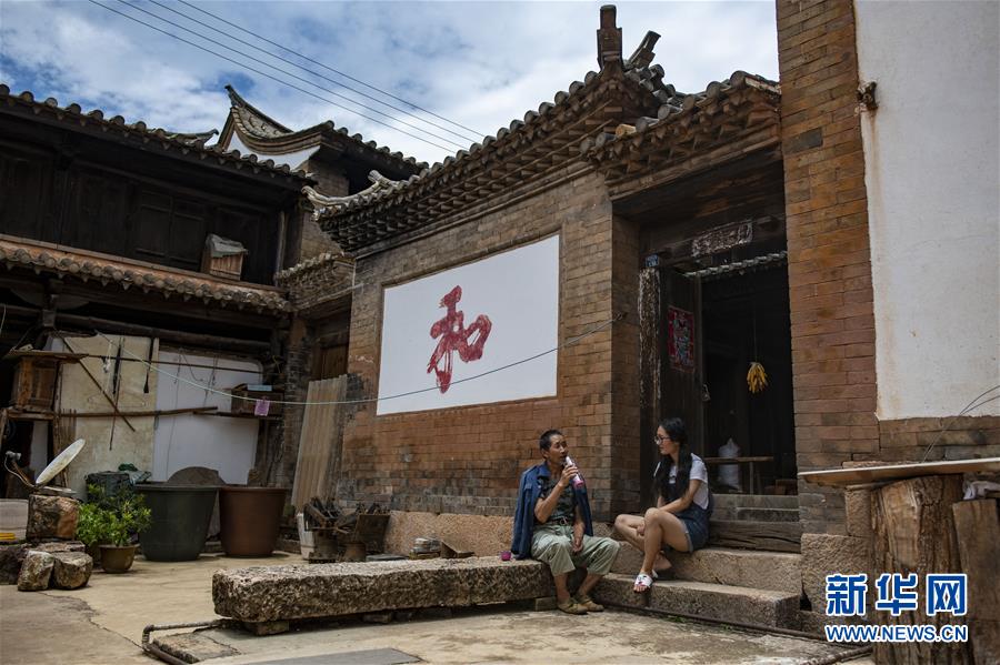 73歲的楊國(guó)保在位于石屏縣異龍鎮(zhèn)符家營(yíng)村的家中與放暑假的孫女聊天(8月8日攝)。新華社記者 江文耀 攝