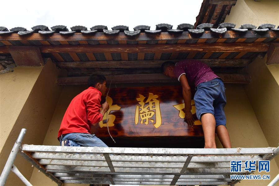 在廣西融安縣大良鎮(zhèn)古蘭村古蘭屯,村民在修繕古民居(8月18日攝)。  新華社記者 黃孝邦 攝