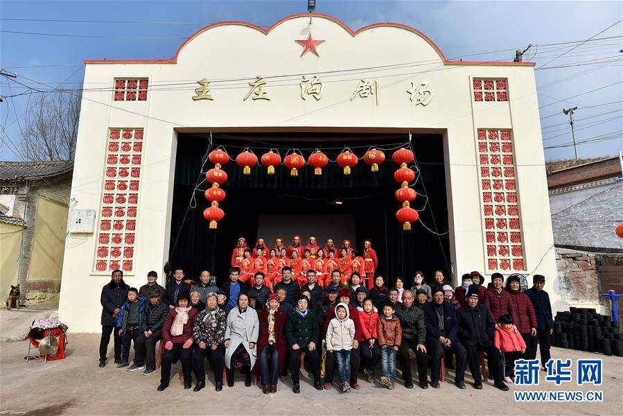 武鄉(xiāng)縣大有鄉(xiāng)王莊溝村的部分村民在劇場合影(2月19日攝)。 新華社記者 詹彥 攝