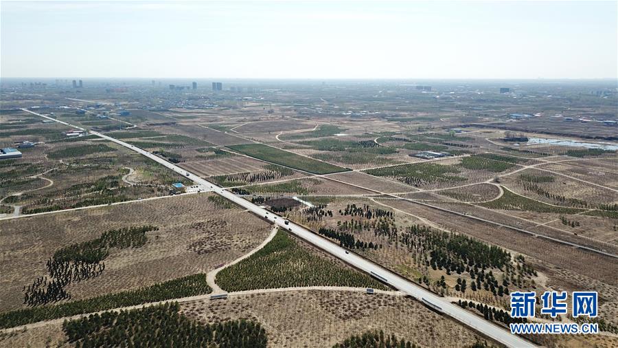 這是雄安“千年秀林”(3月21日無(wú)人機(jī)拍攝)。新華社記者楊世堯攝