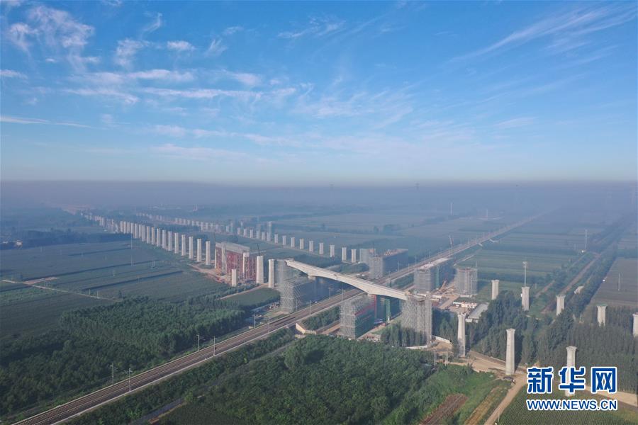 這是8月27日晨無人機拍攝的轉(zhuǎn)體完成的橋梁。 新華社記者 邢廣利 攝