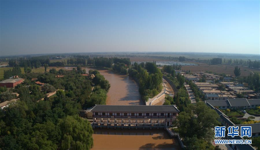 寧夏引黃古灌區(qū)唐正閘。2017年10月寧夏引黃古灌區(qū)入選世界灌溉工程遺產(chǎn),這也是黃河干流上的首個世界灌溉工程遺產(chǎn)(9月1日無人機(jī)拍攝)。新華社記者劉詩平攝