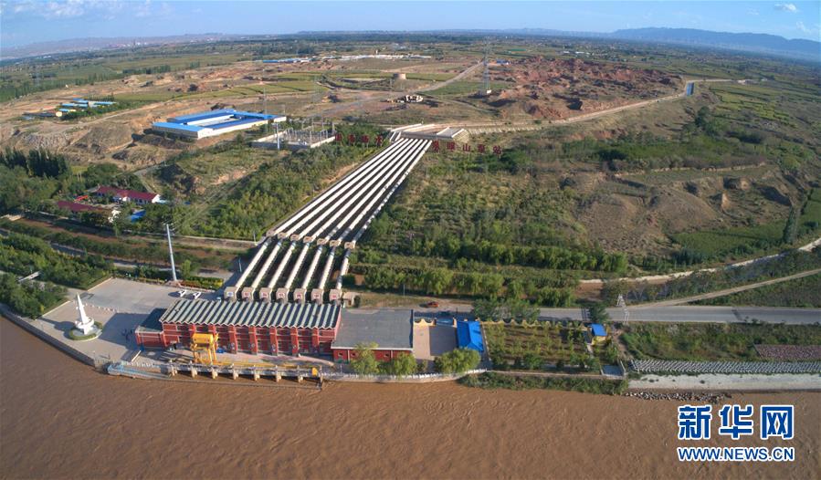 黃河青銅峽水利樞紐工程(9月1日無人機(jī)拍攝)。新華社記者劉詩平攝