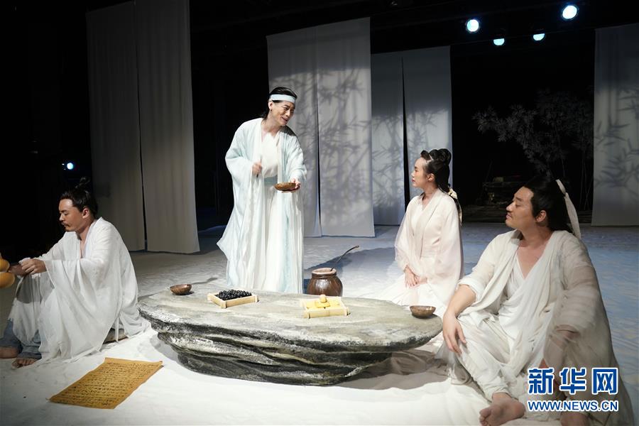 9月16日,演員在話劇《廣陵絕》中表演。 當(dāng)日,話劇《廣陵絕》在北京人藝實(shí)驗(yàn)劇場上演。 新華社記者 金良快 攝
