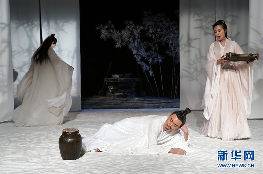 9月16日,演員在話劇《廣陵絕》中表演。 當(dāng)日,話劇《廣陵絕》在北京人藝實(shí)驗(yàn)劇場上演。新華社記者 金良快 攝
