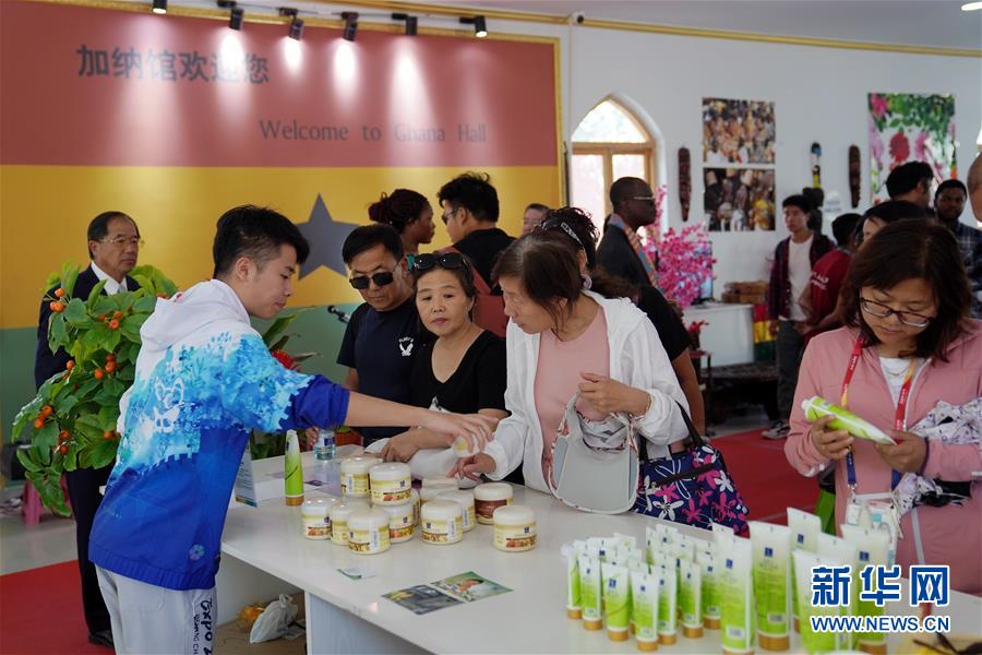 9月18日,參觀者在北京世園會加納館內(nèi)選購商品。 當(dāng)日,2019年中國北京世界園藝博覽會“加納國家日”活動在北京世園會園區(qū)舉行。 新華社記者 鞠煥宗 攝