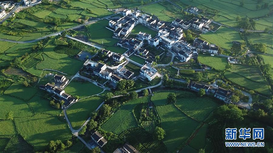 這是8月4日無人機拍攝的安徽黟縣宏村風景區(qū)附近的村莊。新華社記者張端攝