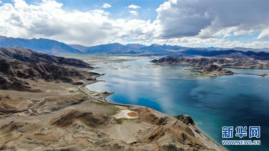 普姆雍錯湖緊挨著公路,是自駕游的理想目的地(9月19日無人機拍攝)。新華社記者晉美多吉攝