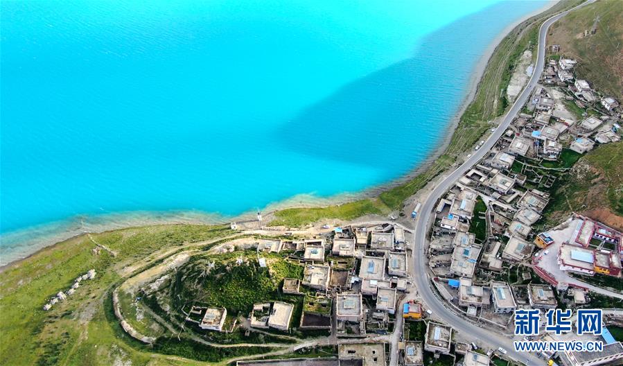 這是普姆雍錯湖邊的堆瓦村(9月19日無人機拍攝)。普姆雍錯位于西藏山南市浪卡子縣境內(nèi),海拔五千多米,在周圍雪山融水的滋潤和陽光的照耀下,美若少女。新華社記者晉美多吉攝