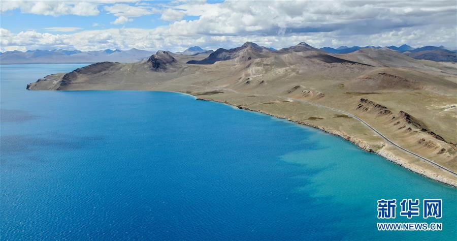 8月31日無人機拍攝的羊卓雍錯及邊上的307省道。新華社記者晉美多吉攝