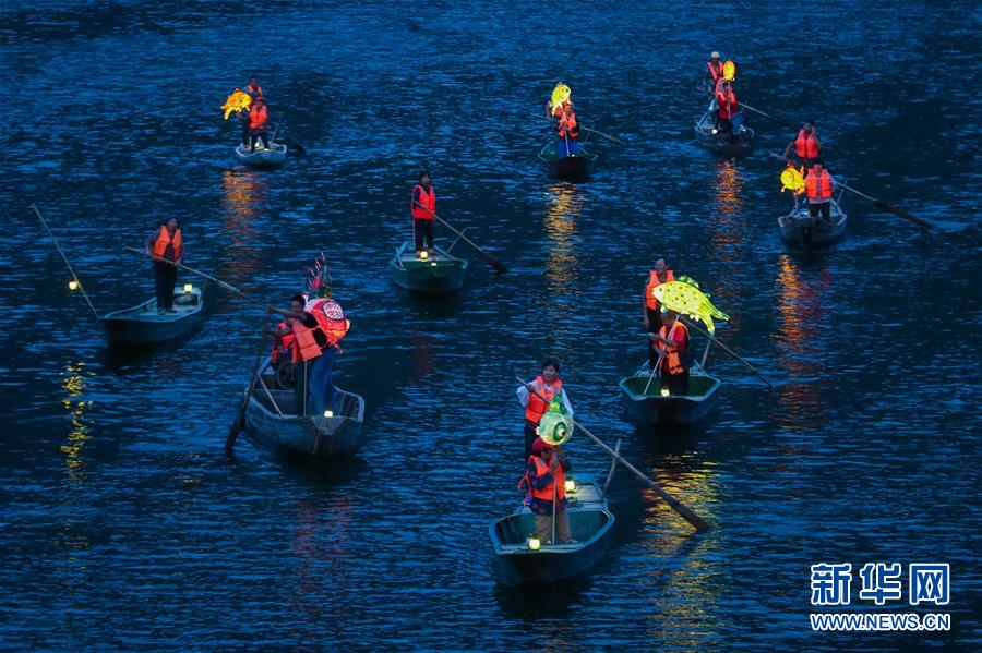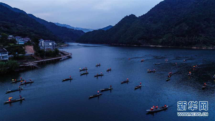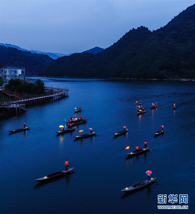 9月25日,在宋村鄉(xiāng)云源港的水面上,漁民劃著漁船,船頭點亮漁燈,構(gòu)成一幅“漁舟唱晚、萬家燈火”的美麗圖景(無人機拍攝)。 近年來,浙江省杭州市淳安縣宋村鄉(xiāng)積極發(fā)展鄉(xiāng)村旅游,打造漁家元素特色景觀,助力鄉(xiāng)村振興建設(shè)。目前,宋村鄉(xiāng)依托山水景觀和漁家文化,帶動了當?shù)鼐访袼藓图碁╂宜?、自助燒烤、農(nóng)事體驗、民俗攝影采風為一體的特色旅游發(fā)展。2019年1月初至7月底,全鄉(xiāng)接待游客10萬人次,實現(xiàn)旅游經(jīng)濟收入1300萬元。 新華社記者 徐昱 攝