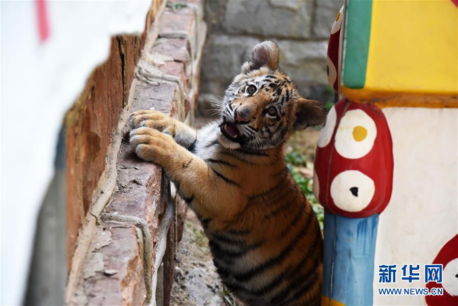 9月26日,孟加拉虎寶寶“小七”在自己的小窩里“玩?!?。 山東濟南動物園的孟加拉虎寶寶“小七”只有3個月大,由于虎媽媽奶水不足,“小七”一出生便由動物園工作人員按科學(xué)方法人工飼養(yǎng)。目前,在飼養(yǎng)員的精心照料下,“小七”在自己的小窩里茁壯成長。 新華社記者 王凱 攝
