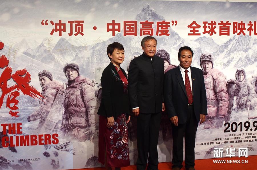 9月27日,原中國登山隊(duì)員桑珠(右一)和登山家夏伯渝(中)參加電影《攀登者》全球首映禮。新華社記者任瓏攝