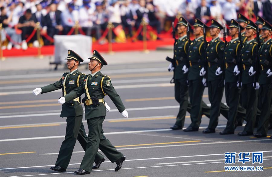 10月1日上午,慶祝中華人民共和國成立70周年大會在北京天安門廣場隆重舉行。這是行進中的儀仗方隊。新華社記者王毓國攝