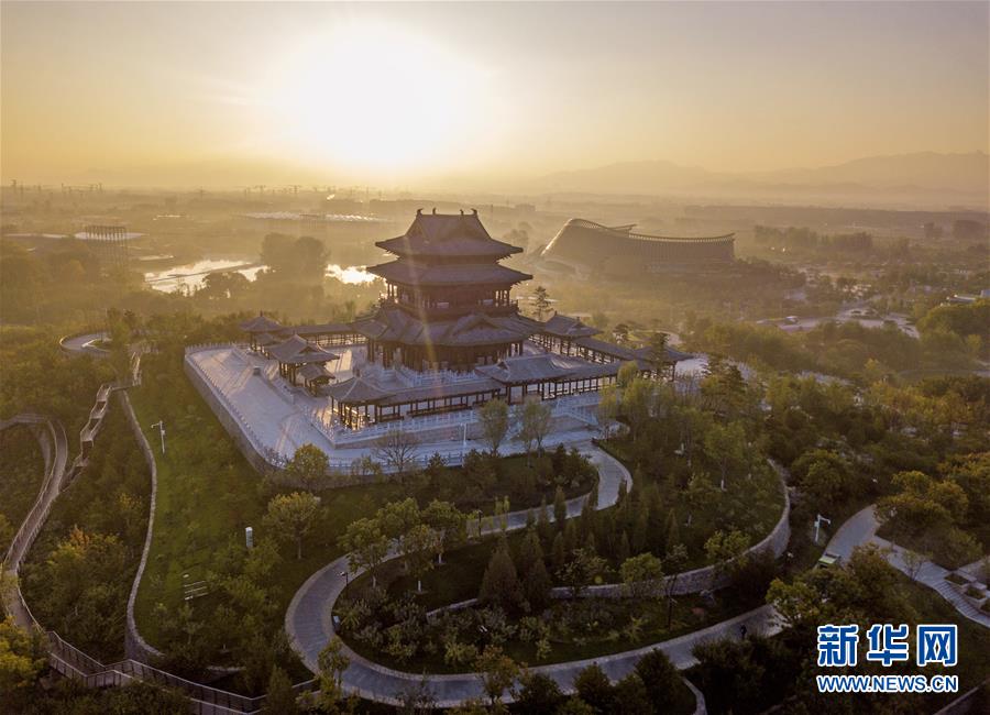 北京世園會(huì)園區(qū)內(nèi)的永寧閣(10月7日無(wú)人機(jī)拍攝)。新華社記者才揚(yáng)攝