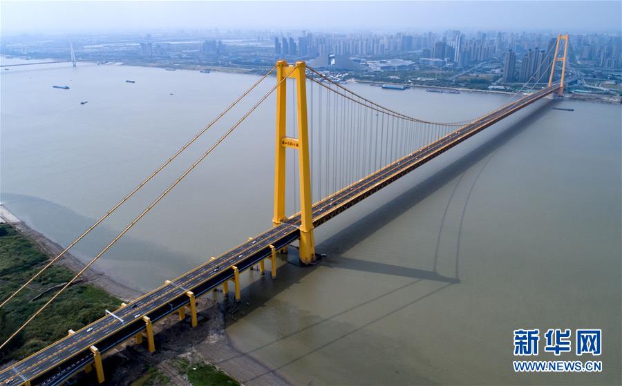 楊泗港大橋建設(shè)創(chuàng)造了多項(xiàng)世界之最:一是主橋跨度達(dá)1700米,為世界上跨度最大的雙層懸索橋;二是主橋設(shè)置雙層雙向12車道,是世界上通行能力最大的公路橋梁;三是大橋主纜設(shè)計(jì)張力6.5萬(wàn)噸,采用了世界上強(qiáng)度等級(jí)最高的主纜鋼絲;四是大橋設(shè)置機(jī)動(dòng)車道、非機(jī)動(dòng)車道、人行觀光道,集過(guò)江交通與觀光于一體,是長(zhǎng)江上功能最完備的橋梁。新華社記者熊琦攝