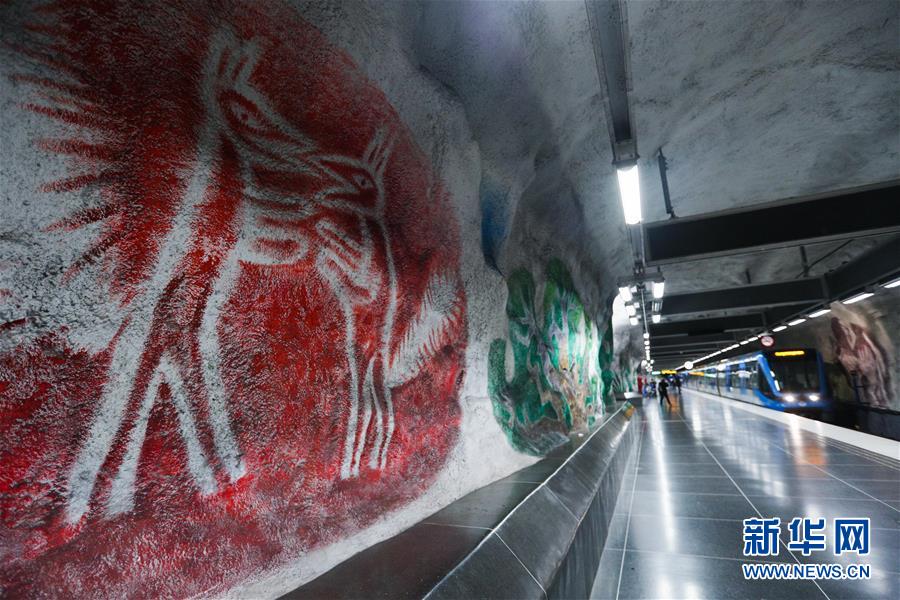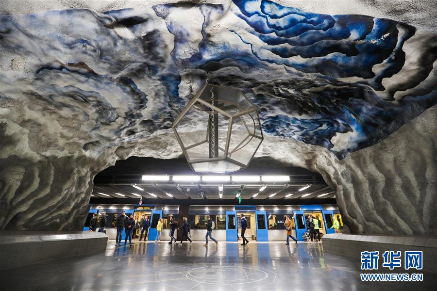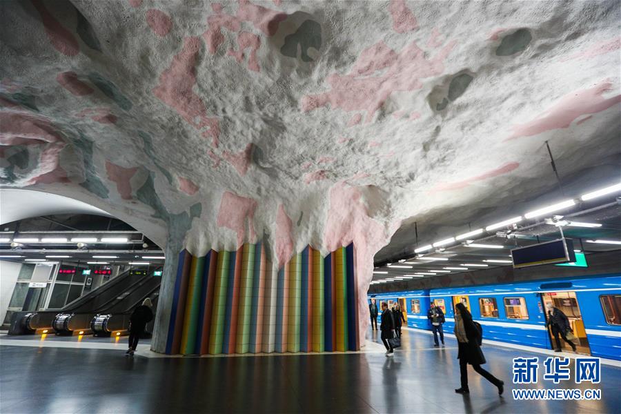 10月8日,在瑞典斯德哥爾摩,乘客在一處地鐵站內(nèi)行走。在瑞典首都斯德哥爾摩,每座地鐵站的站臺、墻壁及大廳的風(fēng)格設(shè)計都無一相同,各有特色。藝術(shù)家們運用了各類藝術(shù)元素裝點地鐵站,色彩繽紛的視覺效果既突出了每個站臺的個性,也豐富了乘客的旅途體驗。走進斯德哥爾摩地鐵,仿佛置身于一座“地下藝術(shù)長廊”。新華社記者鄭煥松攝