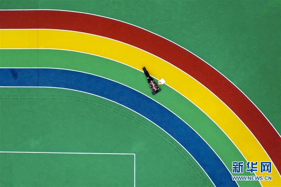 午休時間,王太樊在學校的操場上練習小號、背誦樂譜(10月10日無人機拍攝)。 新華社記者 劉潺 攝