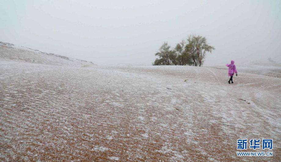 10月15日,游客在寧夏中衛(wèi)市沙坡頭景區(qū)欣賞沙漠雪景。深秋時(shí)節(jié),位于騰格里沙漠邊緣的寧夏中衛(wèi)市沙坡頭景區(qū)迎來一場降雪。漫漫黃沙被覆蓋在皚皚白雪之下,呈現(xiàn)出一種別樣的美。新華網(wǎng)杜文杰攝