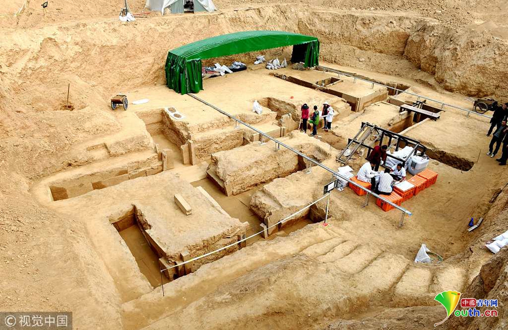西安宜家工地挖出古墓 空中俯瞰數(shù)百墓坑密密麻麻