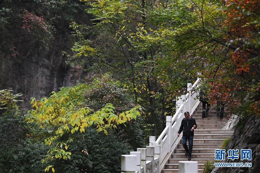 10月24日,游客在河北省武安市賀進(jìn)鎮(zhèn)后臨河村觀賞紅葉。新華社記者王曉攝