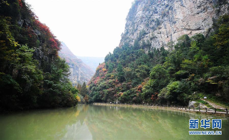 金秋時(shí)節(jié),甘肅省隴南市成縣西狹頌景區(qū)層林盡染,峽內(nèi)石崖、池潭、樹木、山峰構(gòu)成五彩斑斕的秋日美景圖,引人入勝。