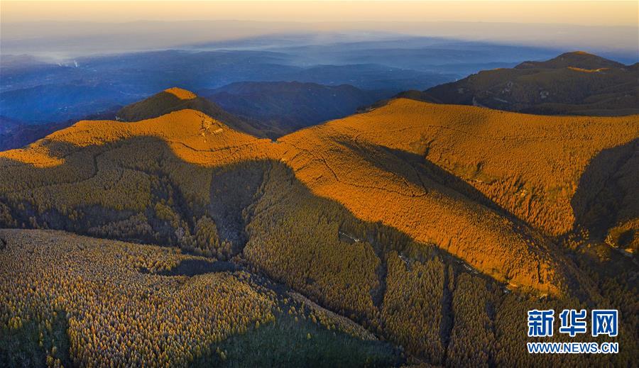 夕陽下的好地方林場(10月9日無人機(jī)拍攝)。新華社記者陶明攝