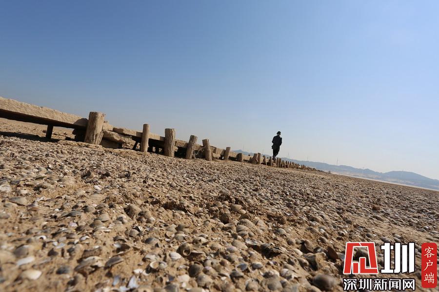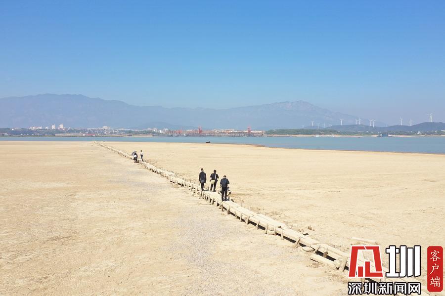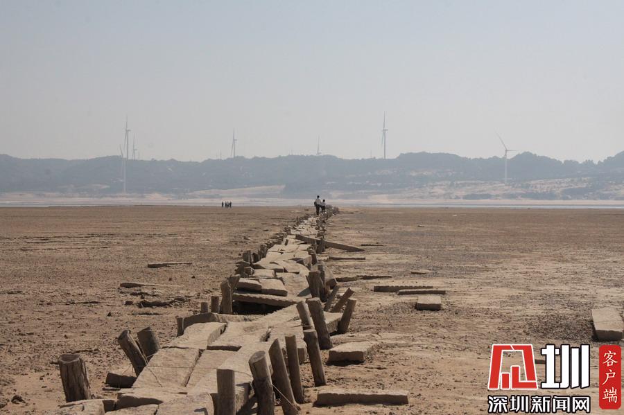 2019年10月20日,江西九江,鄱陽湖星子站水位為10.18米,隨著水位持續(xù)下降,豐水期浸泡在鄱陽湖底的一座總長2930米被譽(yù)為“中國最長的湖中古木石橋”露出水面。