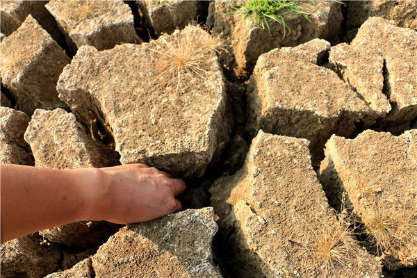 當(dāng)?shù)貢r間2016年5月13日,柬埔寨甘丹省,受厄爾尼諾現(xiàn)象影響,當(dāng)?shù)卦庥龈珊堤鞖猓靥粮珊蚤_裂。