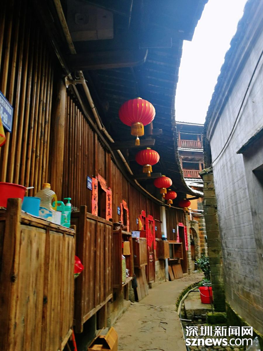 這個(gè)村的土樓沿河而建,并非常均勻地分布在兩岸,土樓形態(tài)豐富,有常見的方形、圓形土樓,還有圍裙形、曲尺形土樓,最獨(dú)特的是還有浙杭水鄉(xiāng)模式單院式土木、磚木結(jié)構(gòu)的吊角樓,形成大樓帶小樓、高低錯(cuò)落布局的奇妙景觀。