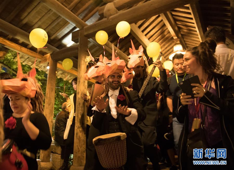 10月25日,戲劇演員和愛好者參加古鎮(zhèn)嘉年華巡游。新華社記者翁忻旸攝