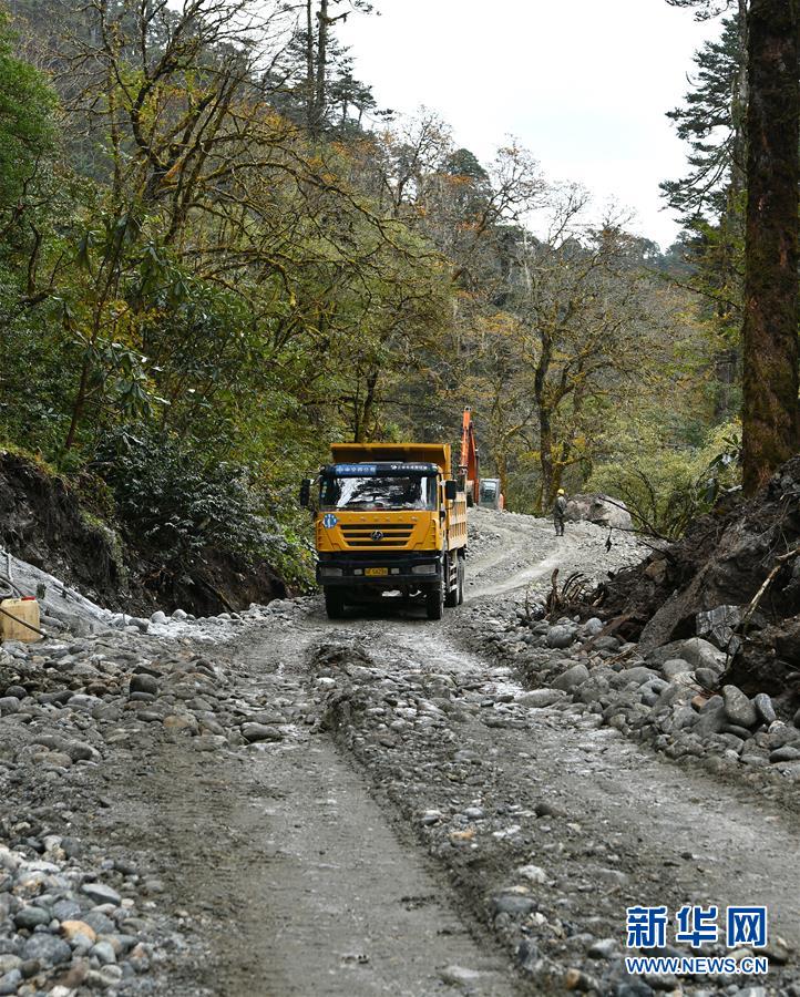 工程車在派墨農村公路施工現(xiàn)場作業(yè)(10月24日攝)。新華社記者李鑫攝