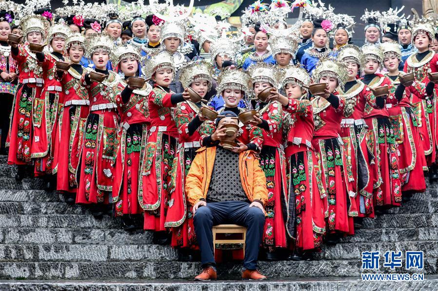 7月2日,侗族同胞在丹寨萬達(dá)小鎮(zhèn)內(nèi)為游客演唱侗族大歌。新華社記者歐東衢攝