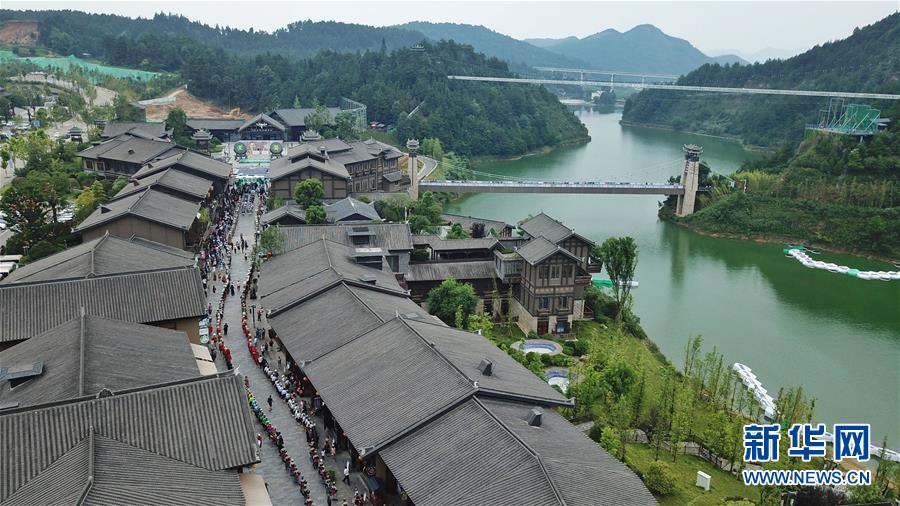 7月2日,游客在丹寨萬達(dá)小鎮(zhèn)游覽(無人機拍攝)。新華社記者歐東衢攝