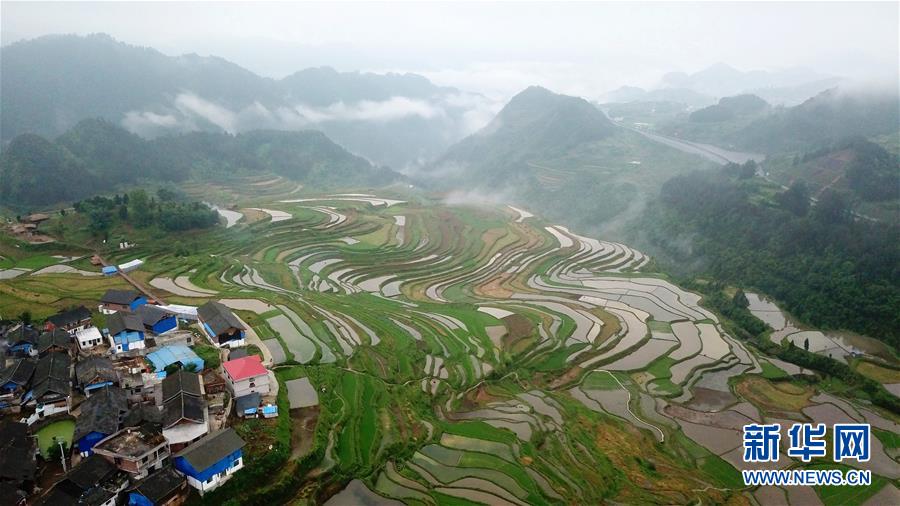 這是5月18日無人機拍攝的貴州省丹寨縣龍泉鎮(zhèn)高要梯田。初夏時節(jié),位于貴州省丹寨縣龍泉鎮(zhèn)的高要梯田景色優(yōu)美。新華社記者楊文斌攝
