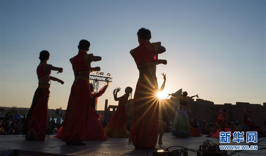 10月27日,來(lái)自福建省廈門市的小白鷺民間舞團(tuán)的演員在位于埃及阿斯旺的菲萊神廟表演。 新華社記者 鄔惠我 攝
