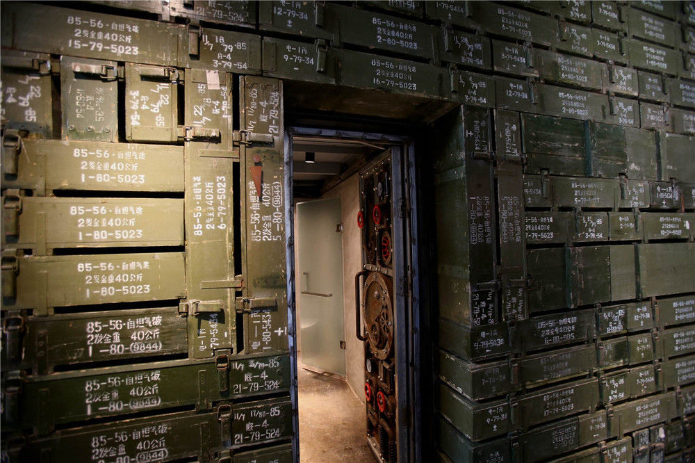 2017年6月18日,河南濟(jì)源王屋山“那些年小鎮(zhèn)”一退役兵工廠內(nèi),一處用千余個(gè)彈藥箱和軍工零部件打造而成的奇特洗手間驚艷亮相。DF/視覺中國(guó)