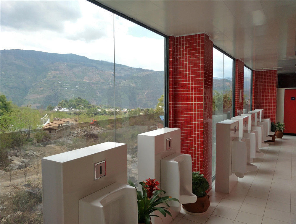 2017年4月7日,云南省大理州石門關(guān)景區(qū)的透明廁所。廁所外觀落地玻璃采用單透膜,讓游客邊上廁所,還可以邊欣賞景區(qū)優(yōu)美的風(fēng)景。李明/視覺中國(guó)