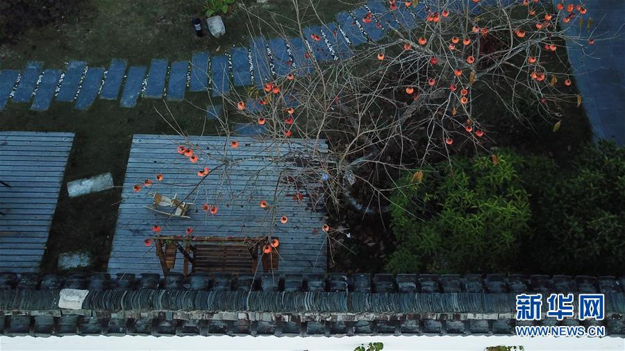 這是11月15日無人機(jī)拍攝的安徽黟縣宏村一家民宿的院落。新華社記者張端攝