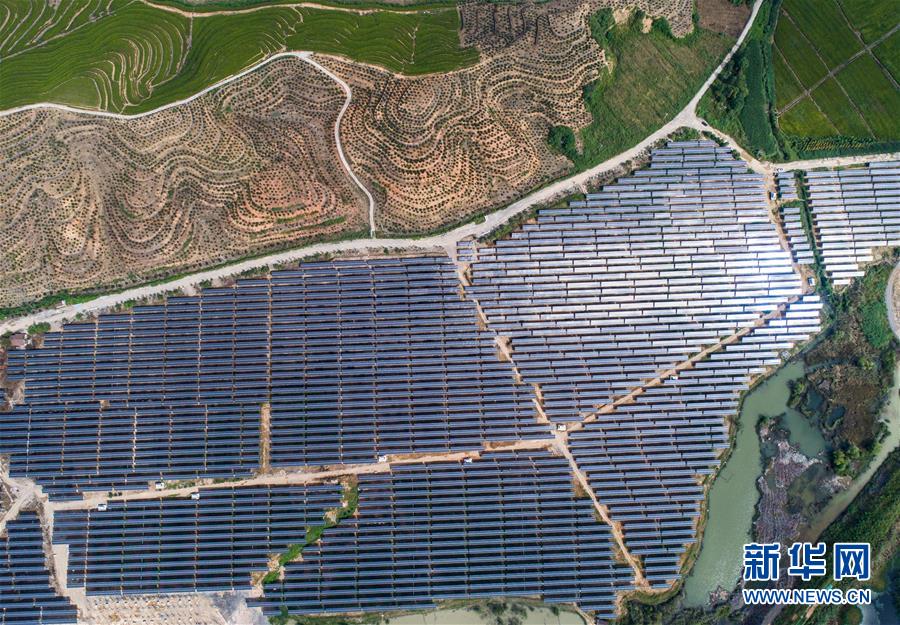 這是7月5日拍攝的山西省運(yùn)城市芮城縣光伏領(lǐng)跑技術(shù)基地(無人機(jī)拍攝)。新華社記者曹陽(yáng)攝