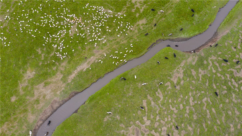 2019年8月7日,青海,航拍草原風(fēng)光。