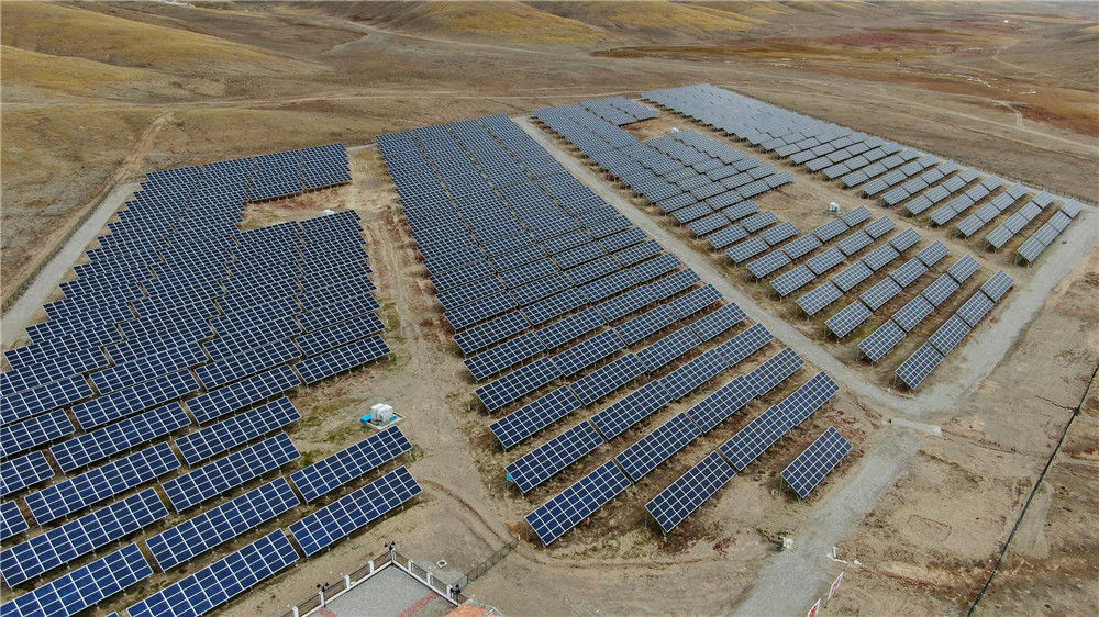 2019年10月10日,位于青海省果洛藏族自治州瑪多縣境內(nèi)的中國海拔最高村級(jí)光伏扶貧電站。