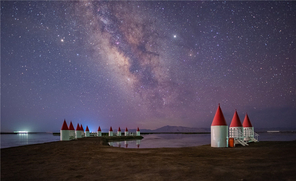 2019年7月28日,青海海西,大柴旦礦場(chǎng)沼澤地觀景平臺(tái)拍攝的大柴旦銀河。