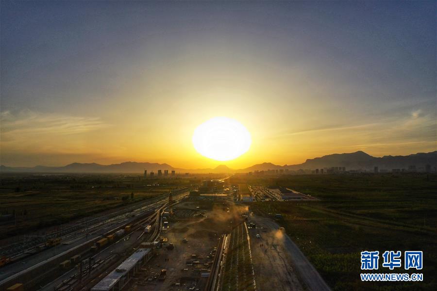 5月28日無人機(jī)拍攝的建設(shè)中的京張高鐵懷來站。京張高鐵懷來站位于河北省懷來縣沙城主城區(qū)東側(cè)偏南3.5公里處,目前該站主體工程已經(jīng)完工。新華社記者邢廣利攝