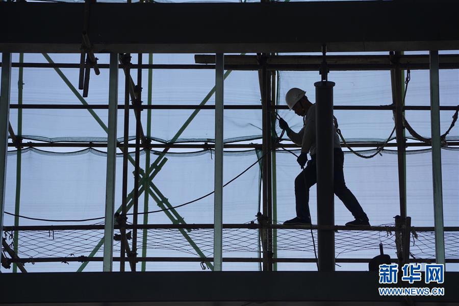5月29日,工人在京張高鐵下花園北站施工。新華社記者邢廣利攝