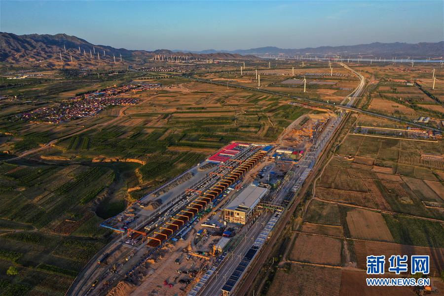 建設(shè)中的京張高鐵下花園北站(5月29日無人機(jī)拍攝)。京張高鐵下花園北站是連接京張高鐵和崇禮鐵路的樞紐站,位于下花園城區(qū)北側(cè)偏東,站場規(guī)模設(shè)2站臺5線。目前,下花園北站主體建設(shè)已完工,正在進(jìn)行內(nèi)外部裝修。新華社記者邢廣利攝