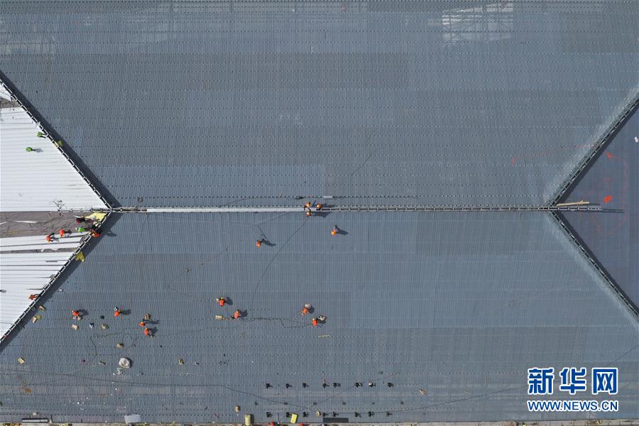 工人在宣化北站施工(5月30日無人機(jī)拍攝)。新華社記者邢廣利攝